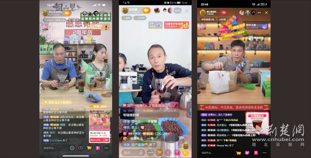 晚上8點(diǎn),武漢市江岸區(qū)永紅工業(yè)園的直播間準(zhǔn)時(shí)亮燈。鏡頭前,沈志忠手法嫻熟地沖泡咖啡,耐心解答粉絲問題:“這款豆子偏果香,適合做冷萃?!逼聊涣硪欢耍瑪?shù)萬(wàn)觀眾不斷刷屏:“阿忠?guī)煾?,周末見面?huì)我要帶朋友來(lái)!”