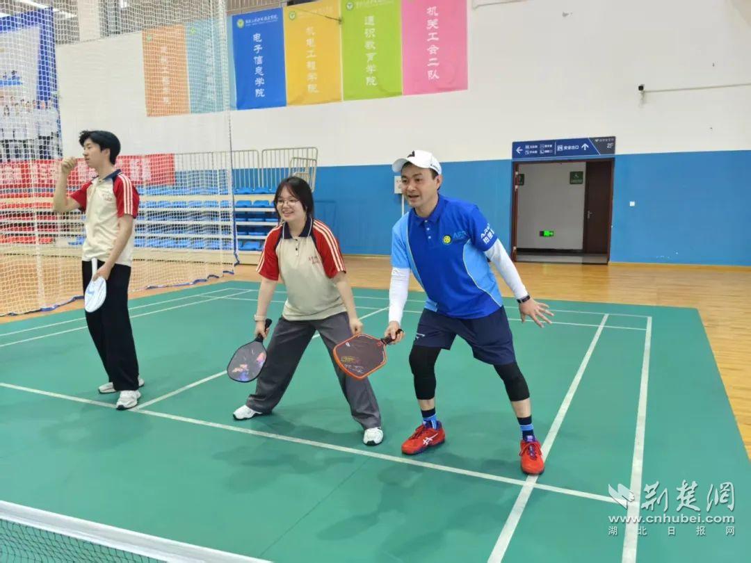 黃緯纮在宜昌三峽技術(shù)學(xué)院做師生匹克球推廣。通訊員供圖