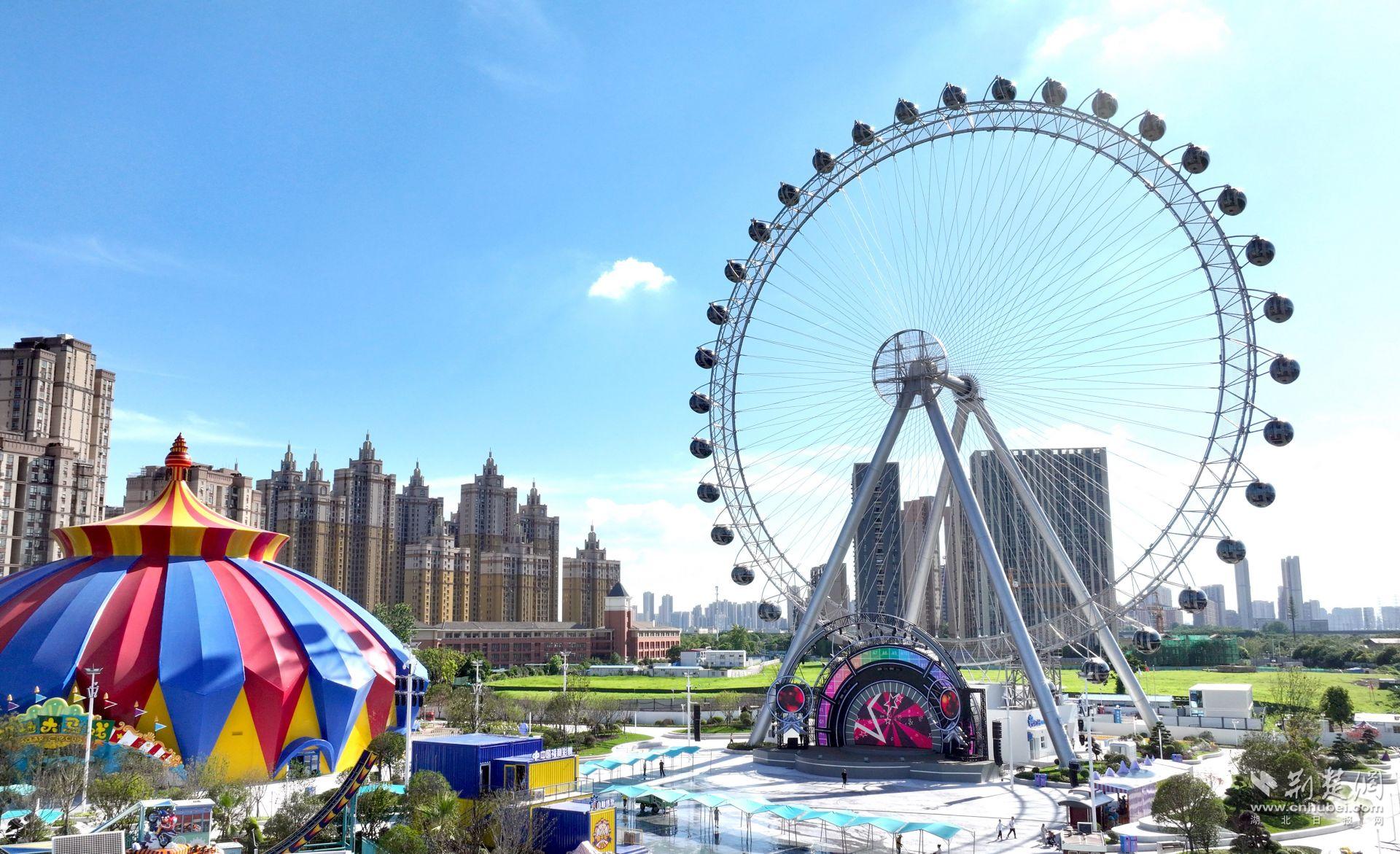 “楚天之眼”摩天輪高達91米,相當(dāng)于30層樓的高度,旋轉(zhuǎn)一周需17分18秒,36間“太空艙”可全景環(huán)視,是目前武漢摩天輪中最高、最大的一個。
