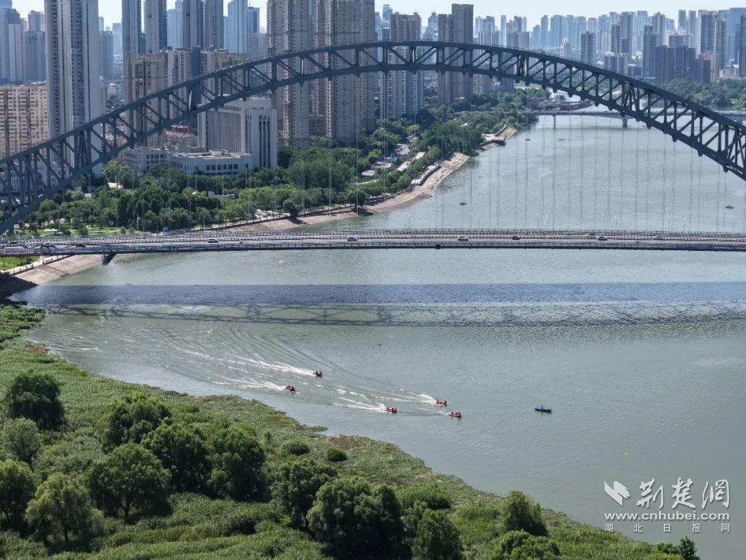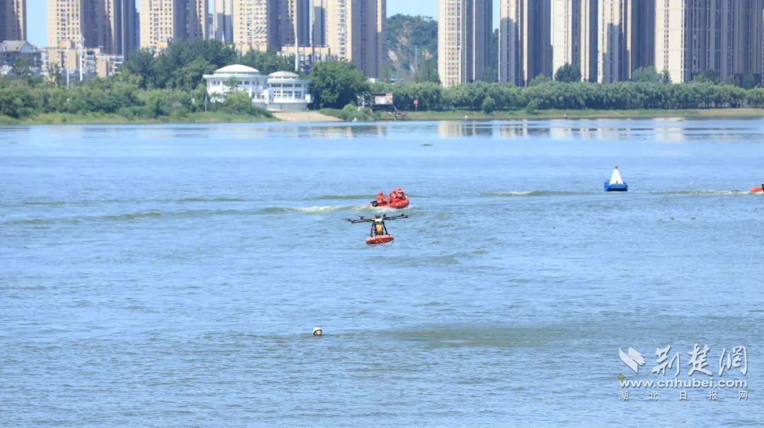 活動現(xiàn)場還模擬了7·16武漢國際渡江節(jié)救援保障演練。只見漢臺救援專業(yè)力量協(xié)同作戰(zhàn),模擬了選手體力不支、突發(fā)疾病、被水流帶偏航道等可能出現(xiàn)的多種緊急情況。水面上,救生艇快速靠近“遇險”人員;救援人員迅速將其拉上船,實施急救。同時,無人機高空巡航,利用熱成像與高清攝像頭實時監(jiān)測江面,一旦發(fā)現(xiàn)異常,便即刻通知救援船只精準救援,為渡江節(jié)筑牢安全防線。