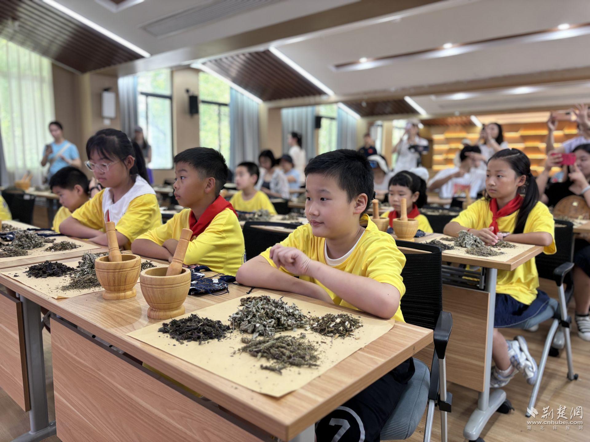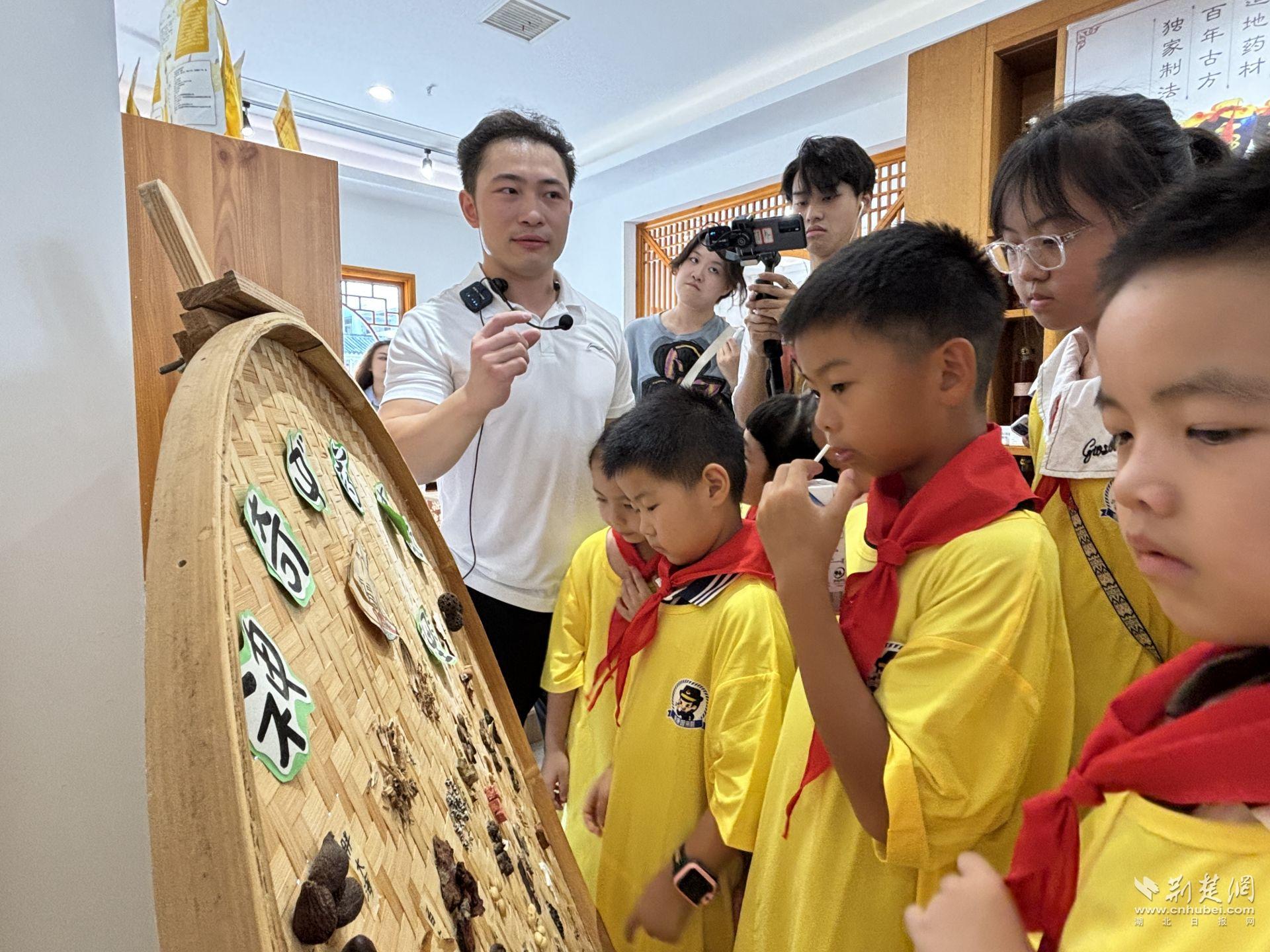 “中藥房現(xiàn)在的藥品種類達(dá)到了600多種,日常常見的路邊雜草,在中醫(yī)藥人眼中可能是治病救命的藥草?!痹趪t(yī)館工作人員的指引下,孩子們學(xué)著辨識(shí)不同的藥材。