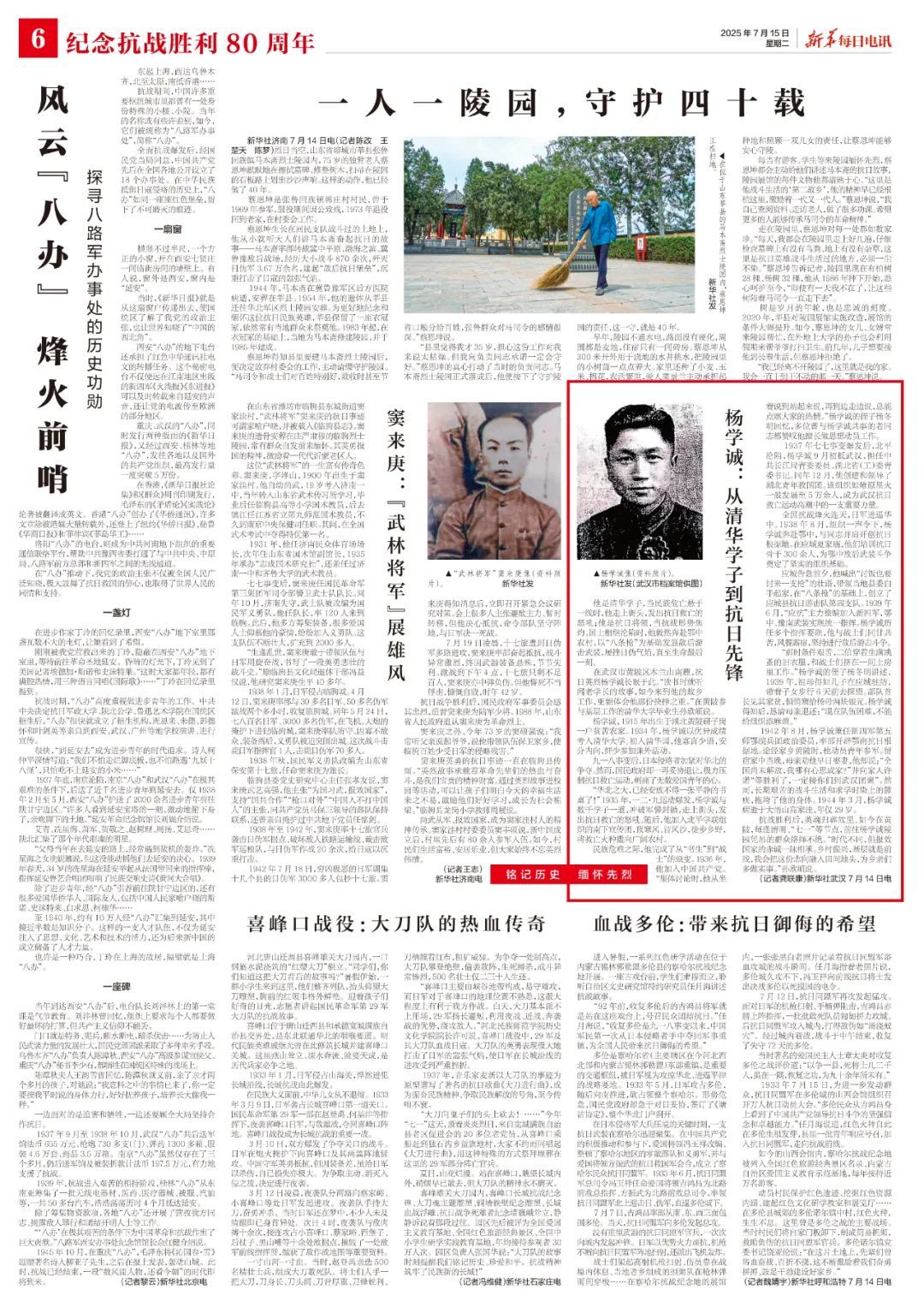 報(bào)道講述了黃陂籍抗日英烈楊學(xué)誠的傳奇歷程