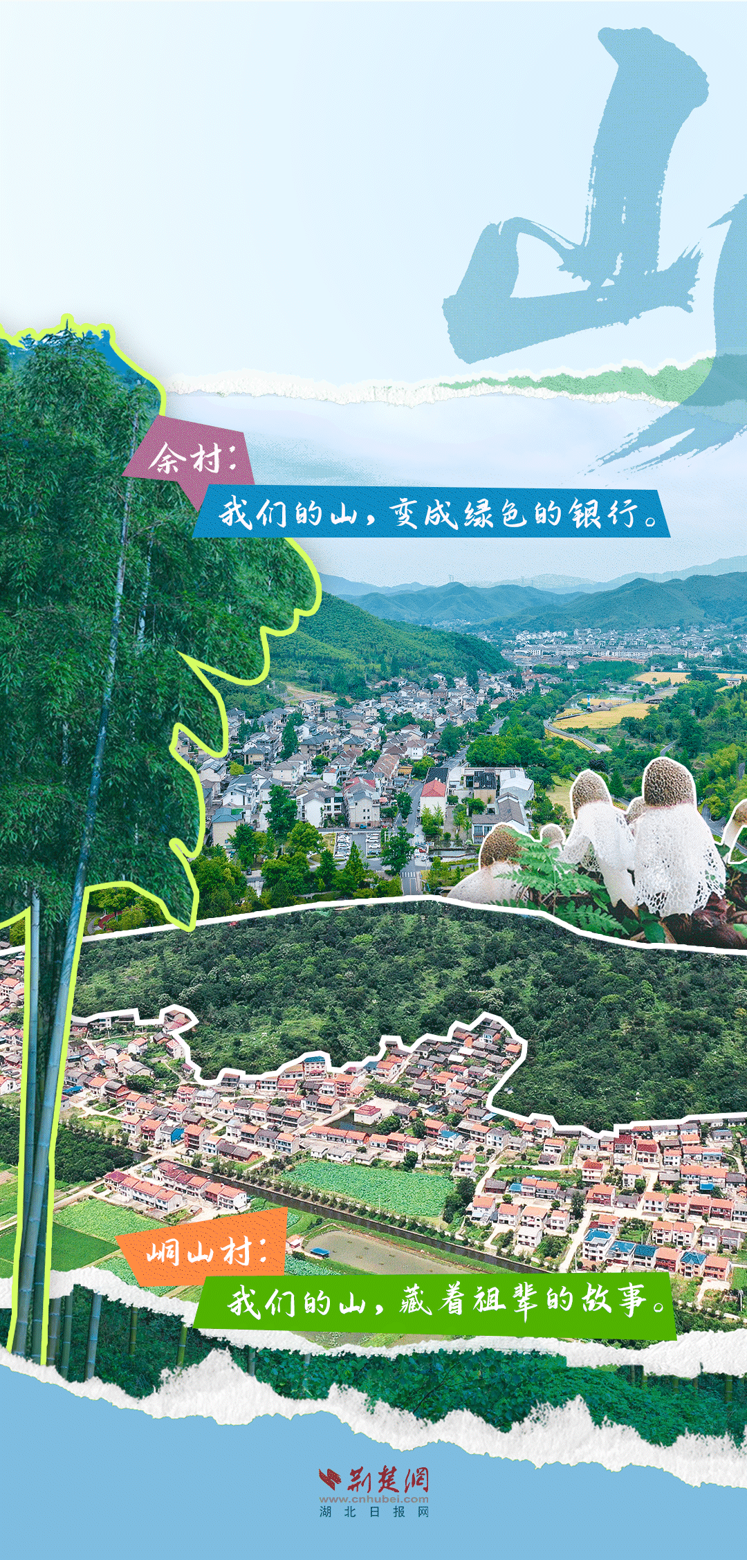 今天,荊楚網(wǎng)(湖北日報(bào)網(wǎng))推出創(chuàng)意海報(bào)《留得住綠水青山,記得住美麗鄉(xiāng)愁——湖北峒山村與浙江余村的對話》,展示中國鄉(xiāng)村的美麗畫卷。