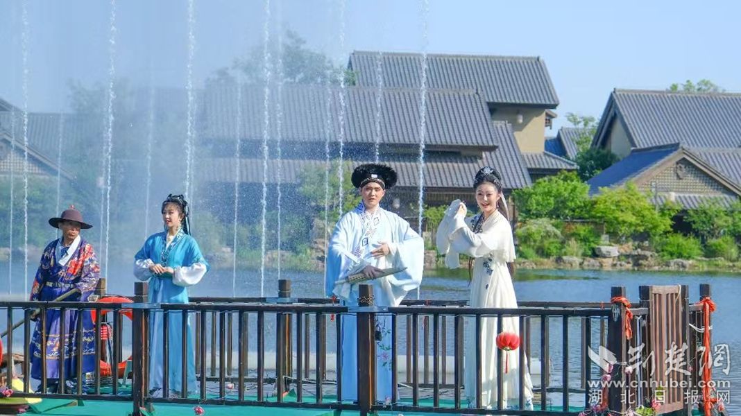 在黃梅,數(shù)字賦能的觸角,早已延伸至文旅場景的角角落落。東山問梅村打造沉浸式夜游項目,大型光影秀《風(fēng)從東山來》以數(shù)字技術(shù)為媒,將悠遠的戲曲傳說娓娓再現(xiàn),讓游客在光影流轉(zhuǎn)中觸摸戲韻。