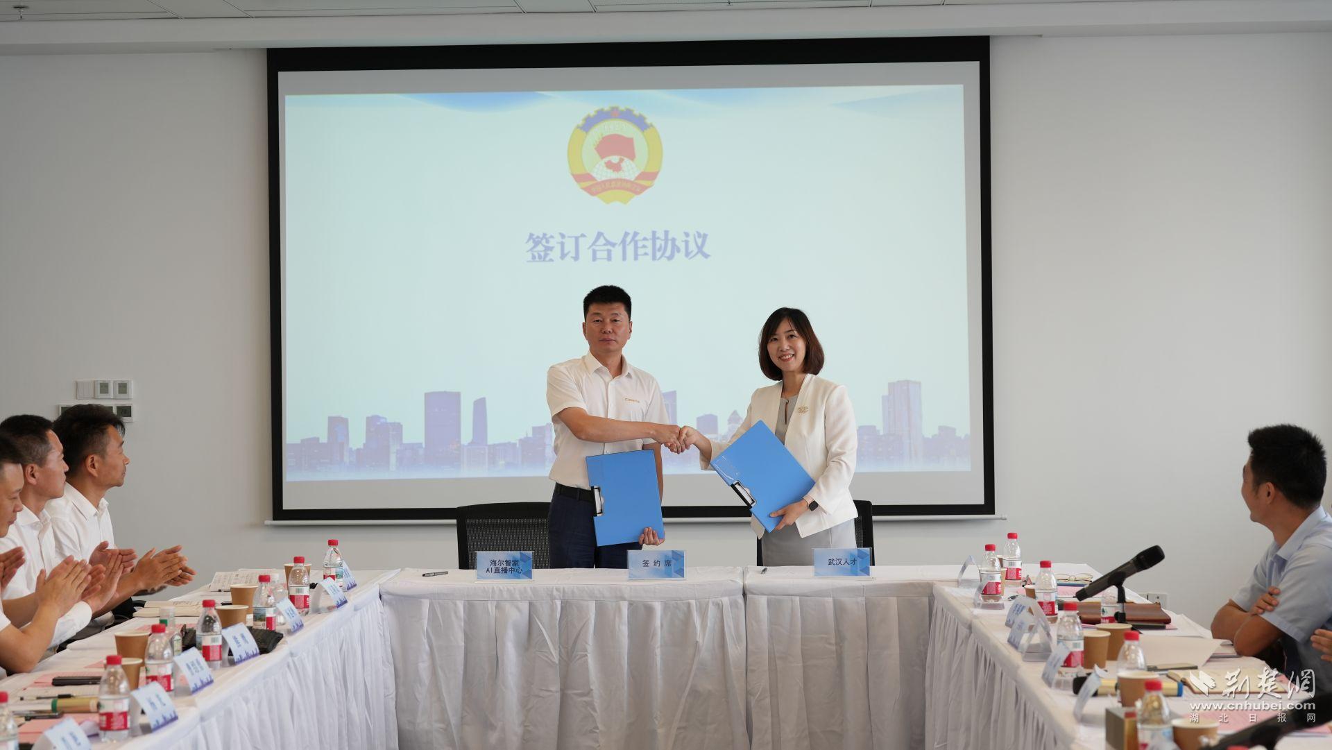 值得一提的是,活動(dòng)現(xiàn)場,海爾智家AI直播中心與武漢人才服務(wù)發(fā)展公司簽署戰(zhàn)略合作協(xié)議,政企攜手推動(dòng)“人才+產(chǎn)業(yè)+科技”的深度融合。這不僅拓展了直播經(jīng)濟(jì)的人才支撐,也標(biāo)志著江漢區(qū)探索直播產(chǎn)業(yè)與人才生態(tài)協(xié)同發(fā)展的又一次實(shí)質(zhì)性落地。