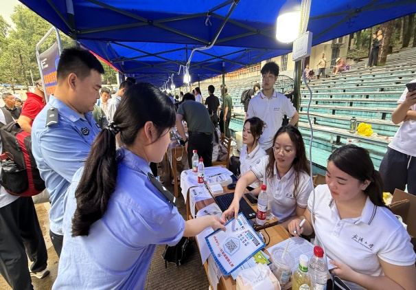荊楚網(wǎng)(湖北日?qǐng)?bào)網(wǎng))訊(通訊員 方茜)9月1日,武漢大學(xué)迎來新生報(bào)到高峰。為筑牢校園安全屏障,武昌區(qū)珞珈山街道平安建設(shè)辦聯(lián)合轄區(qū)派出所、武漢大學(xué)保衛(wèi)部,以“青春無毒·反詐同行·安全護(hù)航”為主題,在梅園操場(chǎng)、工學(xué)部體育館等新生集中區(qū)域開展系列安全宣傳活動(dòng),為3000余名新生及家長(zhǎng)送上“安全第一課”。