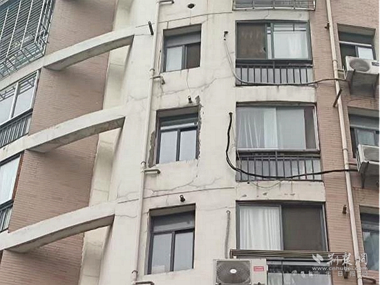 2021年4月,因加氣磚質(zhì)量存在問題,遇水膨脹導(dǎo)致外墻開裂,一道近2米長的裂縫橫亙樓體,外墻面的水泥塊經(jīng)常脫落,居民出行存在極大的安全隱患。