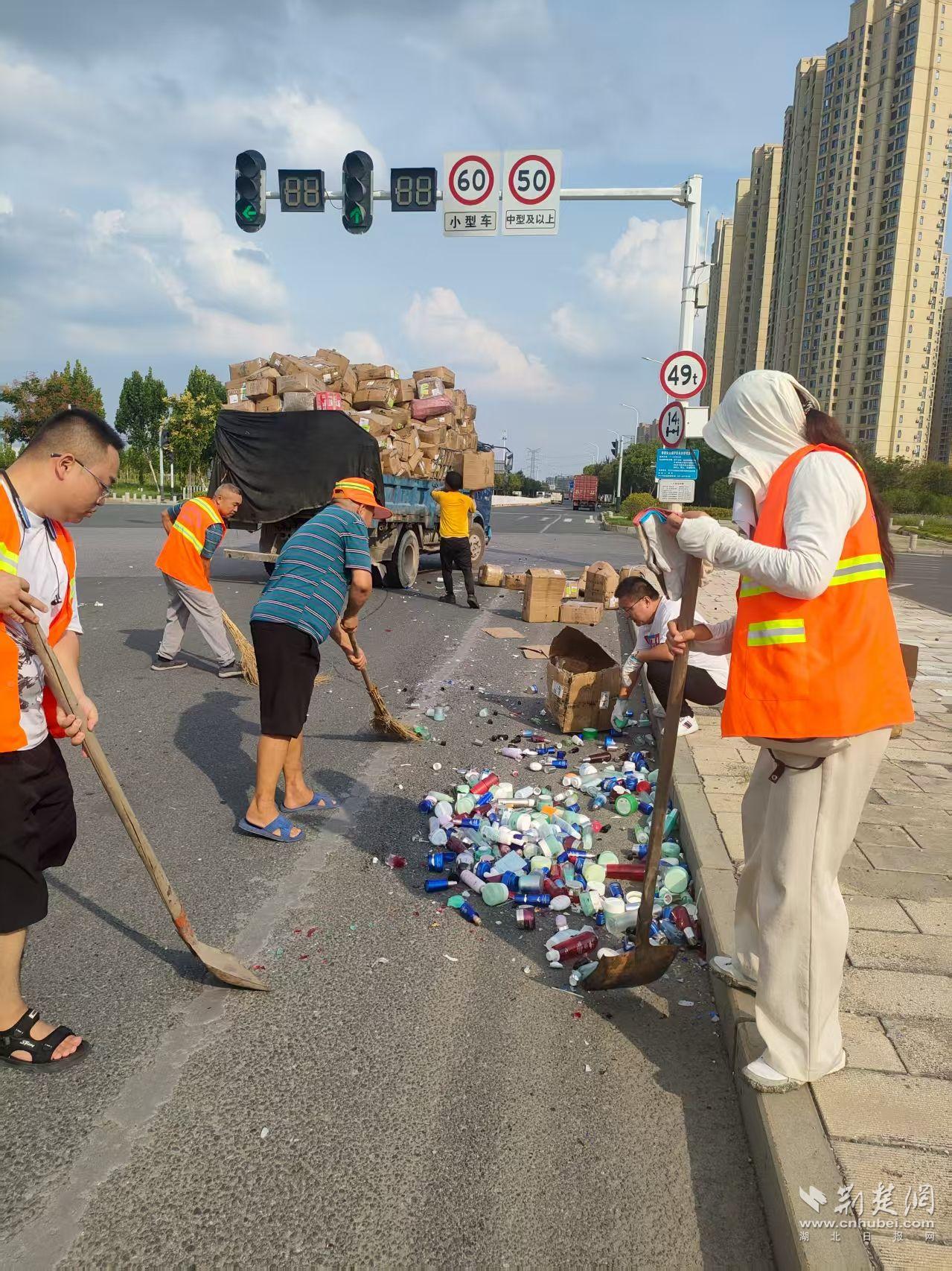 不到20分鐘,散落的貨物被清理干凈,路面恢復(fù)整潔?!罢娴奶兄x了!沒(méi)有你們幫忙,我一個(gè)人不知道要弄到什么時(shí)候,還可能堵車(chē)出事故。”貨車(chē)司機(jī)連聲致謝,感嘆環(huán)衛(wèi)工人幫他解了燃眉之急。