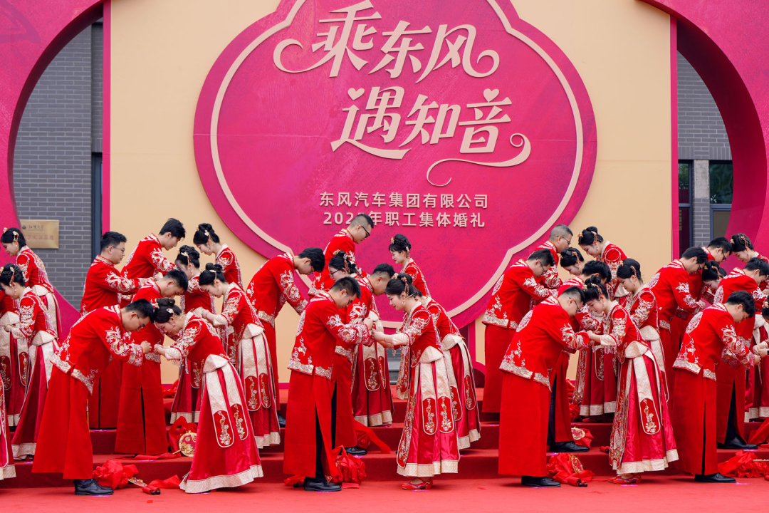 9月20日,東風(fēng)汽車2025年職工集體婚禮在武漢經(jīng)開區(qū)湯湖文化宮舉行。40對新人在親友和嘉賓的見證下,攜手穿越“幸福之門”,共同步入婚姻的殿堂,開啟人生新篇章。