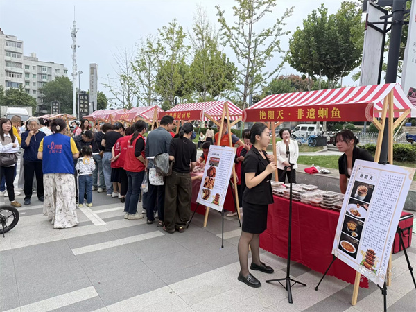 活動現(xiàn)場設(shè)置市集區(qū)與演藝區(qū)兩大板塊。市集區(qū)內(nèi)人頭攢動,轄區(qū)共建單位、音樂企業(yè)與多家商戶積極參與,匯聚特色商品與音樂互動體驗。大音琴行展出多種樂器并銷售音樂周邊產(chǎn)品,吸引眾多武漢音樂學(xué)院學(xué)生及音樂愛好者駐足交流;元祖食品推出月餅、點(diǎn)心等節(jié)令糕點(diǎn)展銷,為中秋佳節(jié)提前預(yù)熱;艷陽天·非遺鮰魚(黃鶴樓店)、中百倉儲、九州上醫(yī)館及多家大成路特色美食商戶也紛紛設(shè)點(diǎn),讓市民在觀賞演出之余,盡享購物與美食樂趣。