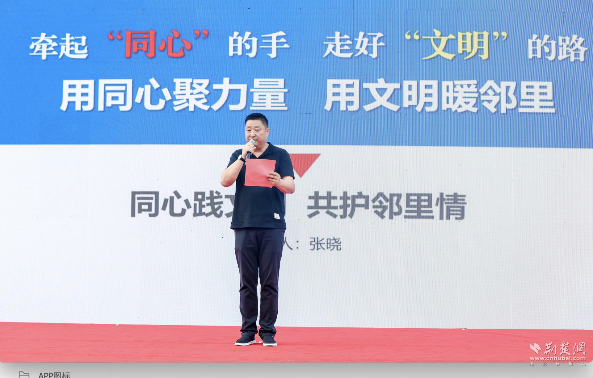 活動(dòng)特別設(shè)置了文明微宣講環(huán)節(jié)。2022年第三季度“湖北好人”、2023年武漢市首屆“同心奮斗者”張曉分享了他的文明實(shí)踐故事。作為漢陽(yáng)區(qū)新的社會(huì)階層人士聯(lián)誼會(huì)副會(huì)長(zhǎng)、漢陽(yáng)區(qū)清露社會(huì)工作服務(wù)中心主任,張曉以《同心踐文明 共護(hù)鄰里情》為題,講述了在日常生活中踐行文明理念的點(diǎn)滴經(jīng)歷。
