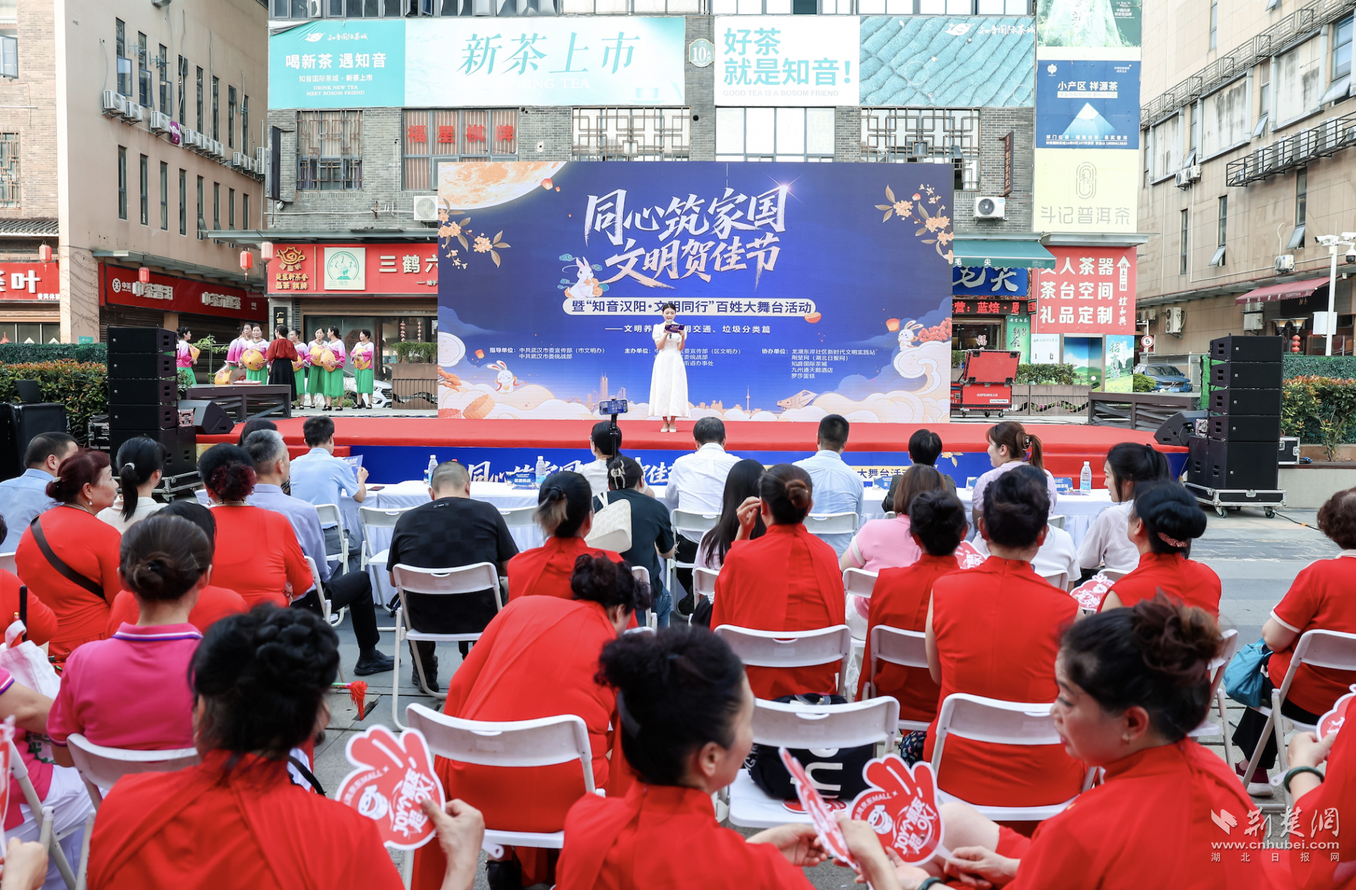 荊楚網(wǎng)(湖北日?qǐng)?bào)網(wǎng))訊(記者陳泉 通訊員 張航、吳勝峰)金秋送爽,丹桂飄香。9月28日下午,武漢市漢陽(yáng)區(qū)龍陽(yáng)街道知音國(guó)際茶城廣場(chǎng)上,一場(chǎng)融合“家國(guó)情懷”與“文明新風(fēng)”的百姓盛宴——“同心筑家國(guó)?文明賀佳節(jié)”暨“知音漢陽(yáng)?文明同行”百姓大舞臺(tái)活動(dòng)火熱上演。