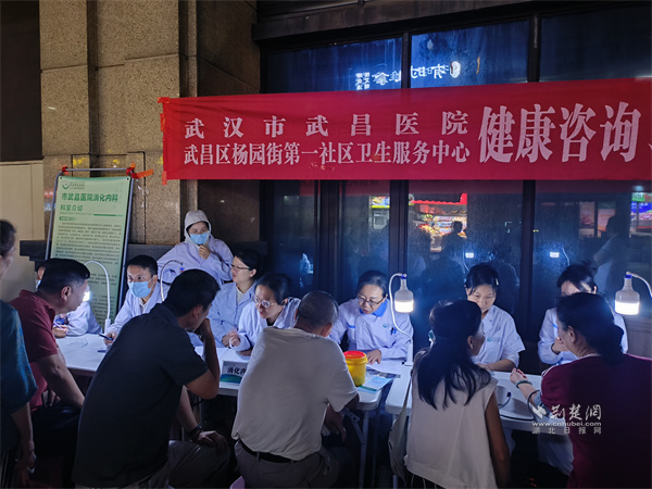 當日,隨著夜色降臨,義診桌前臺燈逐一亮起。來自武昌醫(yī)院消化內(nèi)科、呼吸內(nèi)科等科室的專家醫(yī)師現(xiàn)場坐診,就常見的慢性病管理、飲食養(yǎng)生及用藥安全等問題,為居民進行耐心解答,并對不同病癥的居民給出個性化的健康指導。社區(qū)衛(wèi)生服務(wù)中心婦??频尼t(yī)生也忙碌其中,為女性居民提供婦科健康咨詢與知識科普。