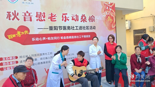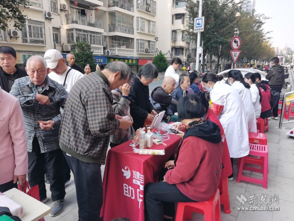 黃鶴書房外,由社區(qū)聯(lián)合武漢大學人民醫(yī)院共同舉辦的“秋音慰老,樂動桑榆”主題活動別具特色,融合健康義診、傳統(tǒng)美食、趣味游藝于一體。