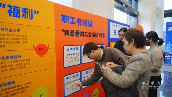 “職工能量站”前,街道工會工作人員耐心講解企業(yè)建立工會相關(guān)政策和會員福利等,并結(jié)合趣味問答,幫助大家深入了解工會職能與服務(wù)內(nèi)容。