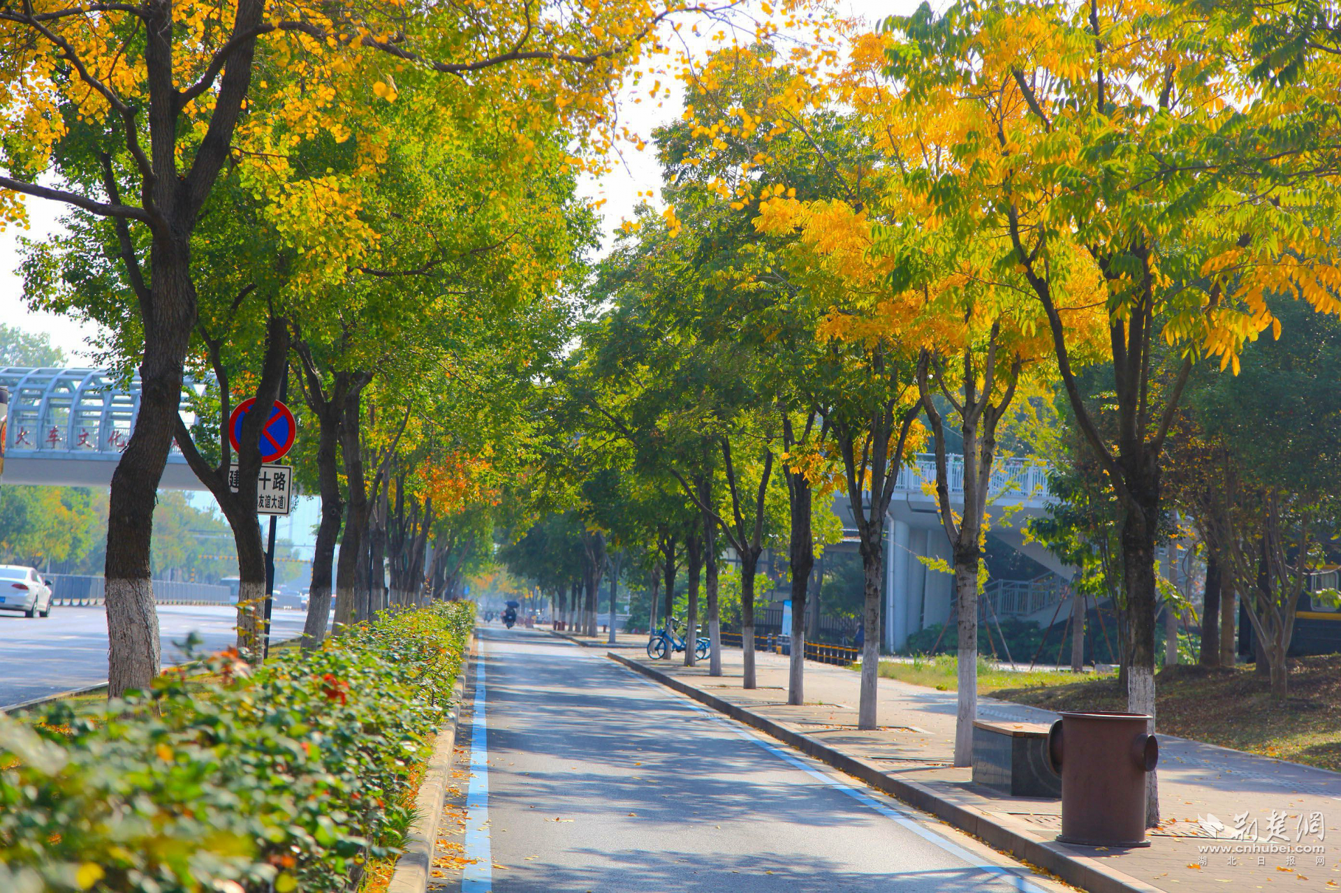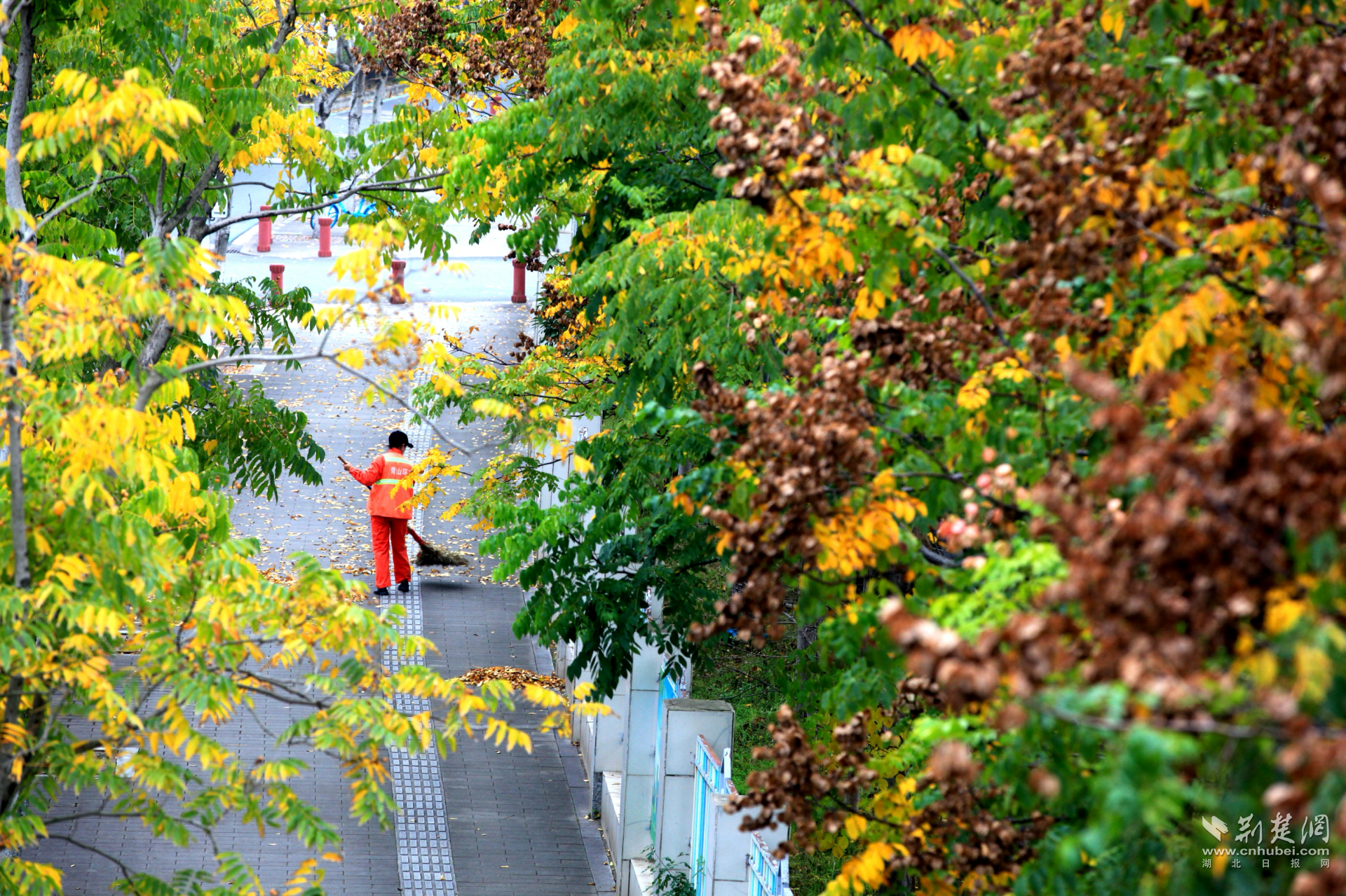 荊楚網(wǎng)(湖北日?qǐng)?bào)網(wǎng))訊(記者 何婧 通訊員 杜媛媛 呂學(xué)勇 張忱)近日,武漢市青山區(qū)建設(shè)十路迎來(lái)了一年中最絢爛的時(shí)刻:無(wú)患子金黃璀璨,烏桕深紅如焰,斑斕色彩與沿途公園、綠道共同勾勒動(dòng)人的城市生態(tài)畫(huà)卷,吸引市民駐足打卡。