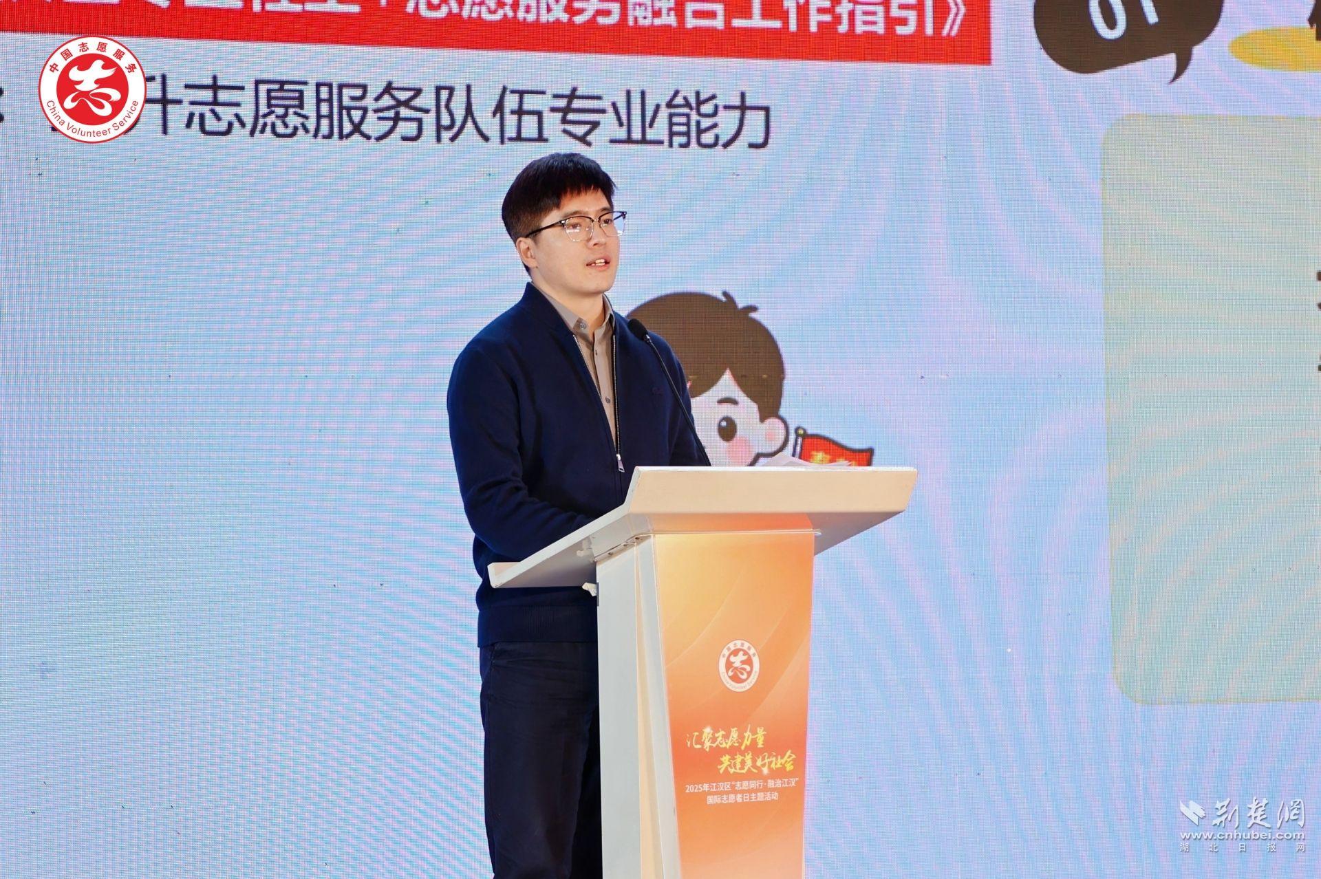 活動(dòng)伊始,武漢市委社會(huì)工作部相關(guān)負(fù)責(zé)人首先傳達(dá)了習(xí)近平總書記給中國志愿服務(wù)聯(lián)合會(huì)的賀信精神并致辭。“賀信對新時(shí)代志愿服務(wù)工作提出了更高要求,也為全市志愿服務(wù)事業(yè)高質(zhì)量發(fā)展指明了方向。”他表示,江漢區(qū)作為武漢志愿服務(wù)的重要力量,要在志愿服務(wù)專業(yè)化、品牌化和社會(huì)化方面持續(xù)探索,推動(dòng)志愿服務(wù)更聚焦民生所需,更貼近基層治理實(shí)際,讓志愿精神在江漢持續(xù)發(fā)光發(fā)熱。