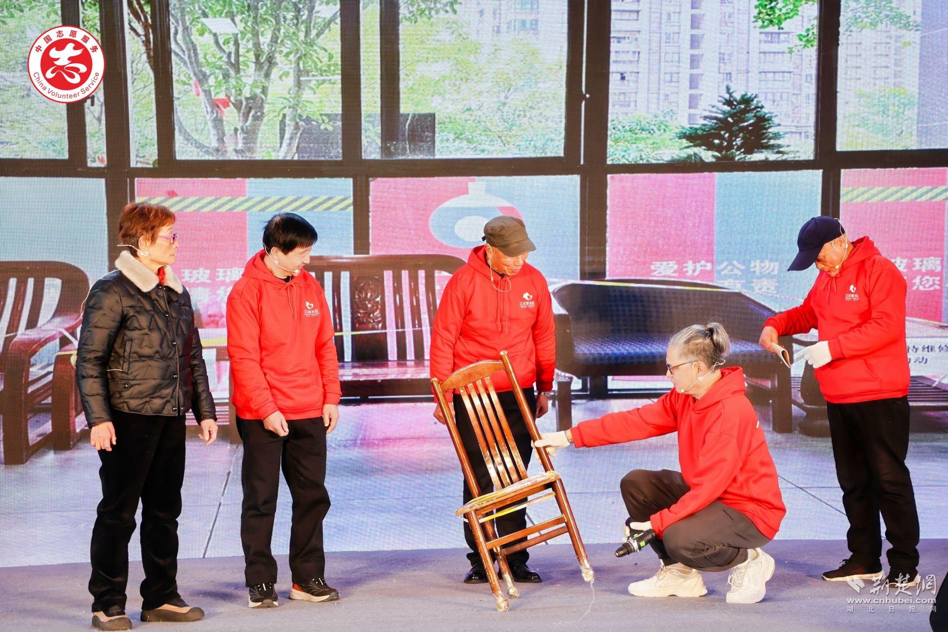 隨后的項(xiàng)目展演瞬間點(diǎn)燃?xì)夥?,讓“專業(yè)力量+志愿行動(dòng)”在舞臺上鮮活呈現(xiàn)。江漢里社區(qū)“煥新工坊”把舊家具的去處變成社區(qū)治理的創(chuàng)意源頭;“江城騎俠”則把藍(lán)騎士的每日配送延展為一張城市暖心網(wǎng)。作為第六屆“社志同行 益匯江漢”公益創(chuàng)投大賽的優(yōu)秀項(xiàng)目代表,兩支隊(duì)伍將真實(shí)場景搬上舞臺,讓志愿服務(wù)如何進(jìn)入社區(qū)、推動(dòng)治理創(chuàng)新,一目了然。