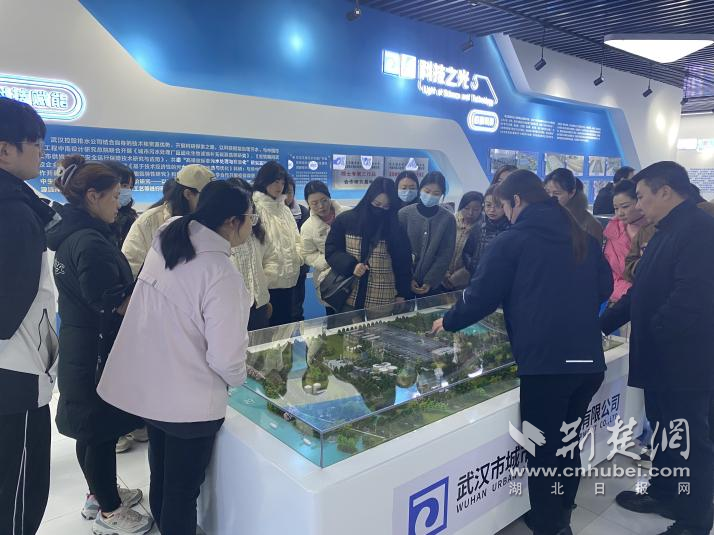 走進(jìn)北湖污水處理廠,現(xiàn)代化設(shè)施井然有序。水流穿管而過,光伏板鋪展在廠區(qū)上方。廠黨支部副書記夏可向?qū)W員們介紹了項(xiàng)目建設(shè)與運(yùn)營(yíng)情況。這一工程是武漢“四水共治”和“長(zhǎng)江大保護(hù)”的重要支點(diǎn),具備日處理80萬噸污水、服務(wù)超過240萬人的能力。通過“光伏+水務(wù)”“污水再生利用”等模式,北湖廠展示了生態(tài)文明建設(shè)的創(chuàng)新路徑。
