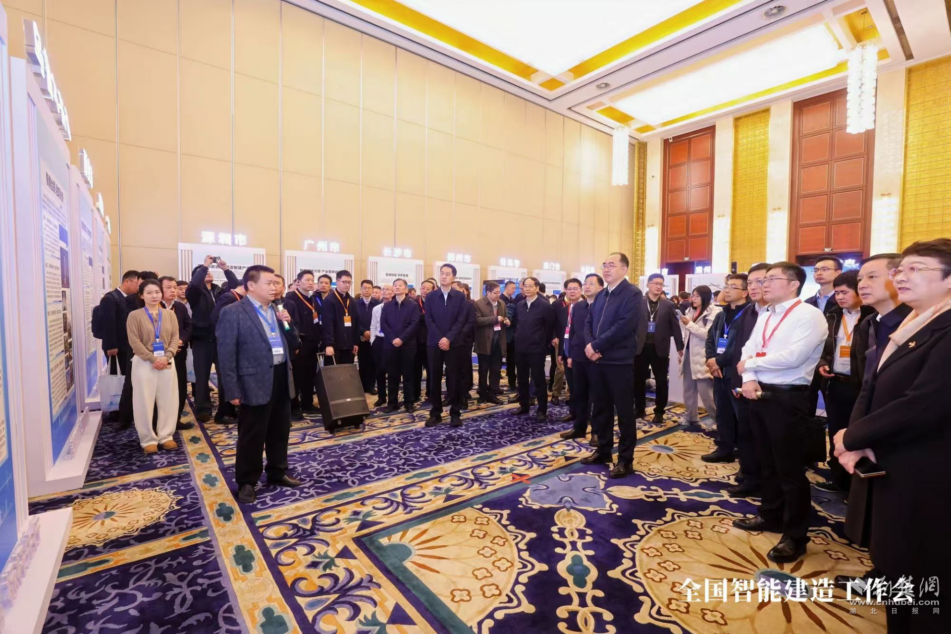 會(huì)前,與會(huì)代表集中觀摩了全國智能建造試點(diǎn)城市成果展。在參觀武漢市智能建造三年成果展板時(shí),住房城鄉(xiāng)建設(shè)部副部長李曉龍認(rèn)真聽取了武漢市關(guān)于“科技+產(chǎn)業(yè)+人才”一體化發(fā)展新模式及智能建造新生態(tài)建設(shè)情況的匯報(bào),對武漢在推動(dòng)建筑業(yè)轉(zhuǎn)型升級方面的實(shí)踐成效給予了充分肯定。
