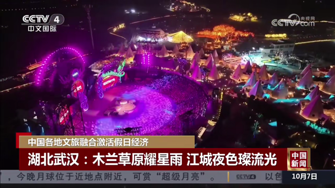 10月7日:CCTV-4《中國新聞》聚焦報道黃陂木蘭草原文旅融合激活假日經濟:木蘭草原耀星雨,江城夜色璨流光。