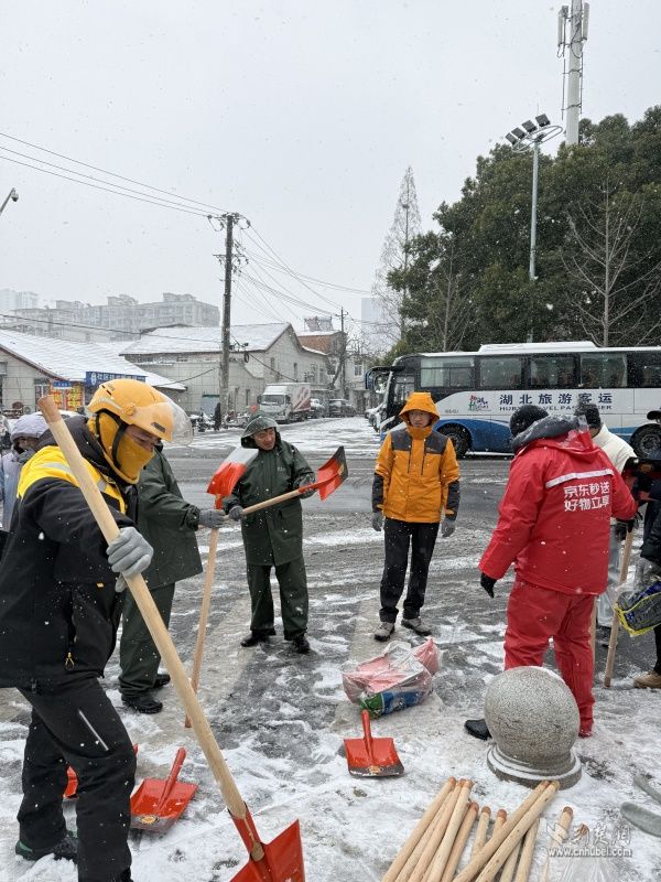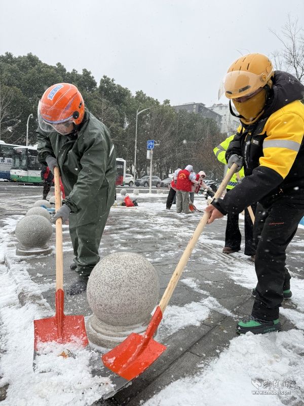 值得一提的是,這群外賣騎手不僅是城市的“奔跑者”,也是冰雪中的“志愿紅”。在近日的鏟雪除冰行動(dòng)中,他們主動(dòng)放棄休息時(shí)間,響應(yīng)街道號(hào)召,自發(fā)拿起鐵鍬、掃帚,深入背街小巷清理積雪。寒風(fēng)凜冽,他們不顧雙手凍得通紅,或彎腰揮鍬鏟除積冰,或俯身清掃殘雪碎冰,還不時(shí)提醒過往居民“路滑慢走”,用實(shí)際行動(dòng)為轄區(qū)治理注入溫暖力量。