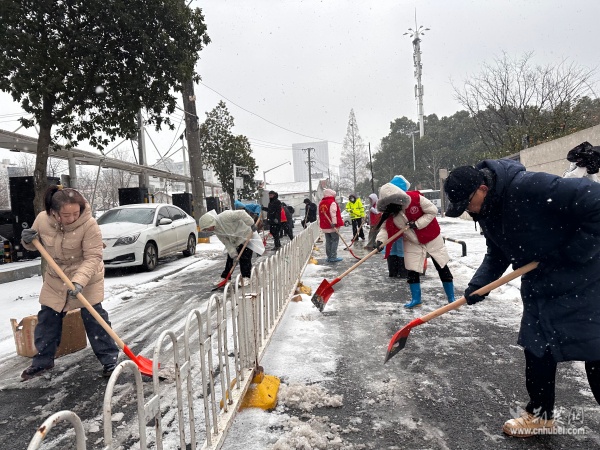 面對(duì)雪情,街道迅速啟動(dòng)應(yīng)急響應(yīng)機(jī)制,提前統(tǒng)籌物資與人員,確保除雪作業(yè)高效有序開展。“聞雪而動(dòng)”成為街道上下的共同行動(dòng)。志愿服務(wù)力量第一時(shí)間集結(jié),奔赴除雪一線,開展撒鹽除冰、積雪清運(yùn)、防滑墊鋪設(shè)等工作。在寒風(fēng)凜冽的街頭,一抹抹“志愿紅”格外醒目,他們用雙手鏟出一條條平安通道,在寒冬中筑起溫暖而堅(jiān)實(shí)的安全防線,傳遞著守望相助、共建共享的溫情。