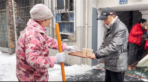 “大家歇一歇,喝點(diǎn)姜茶暖暖身子!”正當(dāng)眾人干勁十足時(shí),一位黨員居民端著熱氣騰騰的姜茶走來(lái),將暖茶遞到每個(gè)人手中。“我家老伴重癥需要照顧,沒(méi)辦法和大家一起出力,只能煮點(diǎn)熱茶讓大家暖和一下?!币槐?、一聲問(wèn)候,凝聚起鄰里間最真摯的情誼,為掃雪行動(dòng)更添溫情。