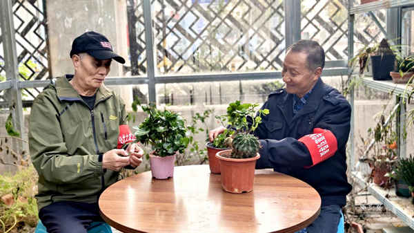 作為“春天鄰里服務(wù)隊”發(fā)起人之一和支部老黨員,周榮良是看著這些變化一點點發(fā)生的。最早動員大家時,他領(lǐng)著幾位老黨員,挨家挨戶敲門,話也說得實實在在:“咱們一起試試,先清出一小塊地也行?!庇腥丝?,有人問,可更多的鄰居還是打開了家門——退休的居民搬出了家里不用的花盆;做水電工的師傅答應(yīng)幫忙安裝澆水的水管;連剛上學(xué)的小孩子,也捧來了自己養(yǎng)的小多肉。