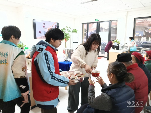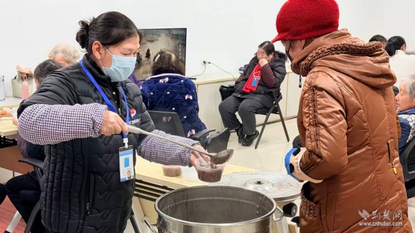 西廠(chǎng)口社區(qū)頤養(yǎng)中心為老人送上臘八粥。 通訊員供圖