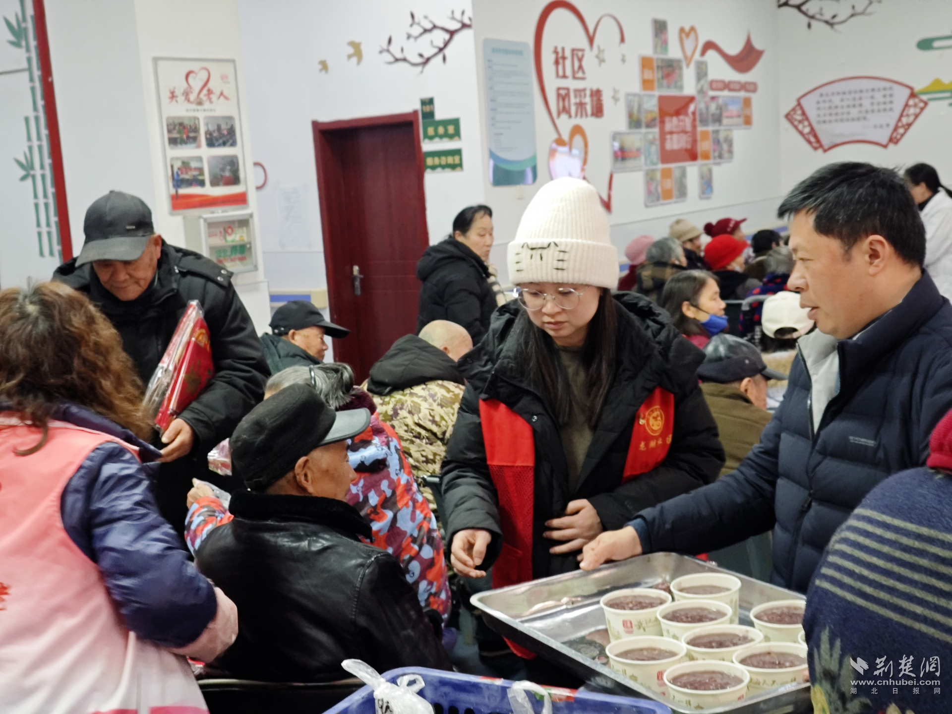 針對高齡、獨(dú)居及行動不便的老人,小軍山社區(qū)專門組建志愿小分隊(duì),開展“入戶送溫暖”行動。志愿者們敲開老人的家門,送去臘八粥和慰問品,并與他們親切拉家常,仔細(xì)詢問身體和生活近況。當(dāng)天的社區(qū)老年活動室里同樣暖意融融。老人們歡聚一堂,品嘗著香甜的臘八粥,聽著志愿者講述臘八節(jié)的習(xí)俗,現(xiàn)場笑聲不斷,節(jié)日氛圍濃厚。