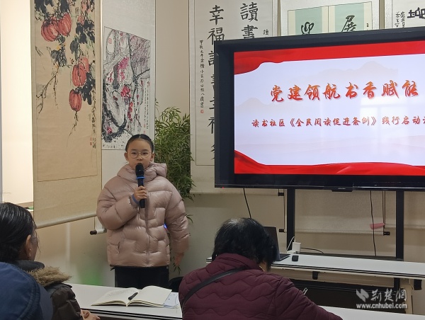 荊楚網(wǎng)(湖北日報(bào)網(wǎng))訊(通訊員 吳玲麗)為深入貫徹落實(shí)《全民閱讀促進(jìn)條例》精神,推動(dòng)“全民參與、公益普惠”理念在基層落地生根,2月1日上午,武昌區(qū)黃鶴樓街道讀書社區(qū)在黃鶴書房舉辦“黨建領(lǐng)航?書香賦能”條例踐行啟動(dòng)活動(dòng)。社區(qū)班子成員、黨員代表、老年居民、新就業(yè)群體及青少年代表共同參與,共同開啟社區(qū)全民閱讀新篇章。