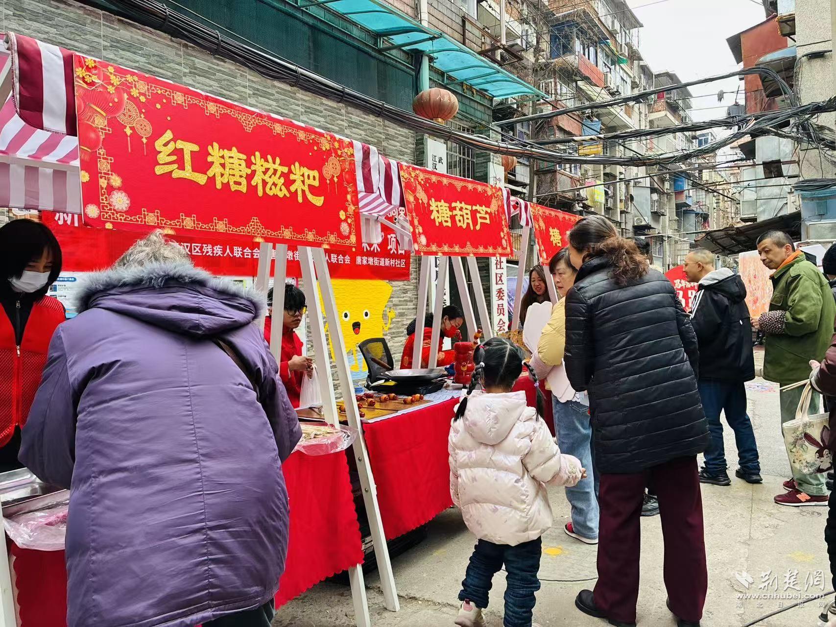 當(dāng)天,新村社區(qū)舉辦“匠心傳承煥新彩 非遺助殘啟未來(lái)”項(xiàng)目系列活動(dòng)之一——“非遺游園匯百藝 鄰里同心啟新章”。在江漢區(qū)殘疾人聯(lián)合會(huì)和唐家墩街道殘疾人聯(lián)合會(huì)的指導(dǎo)下,這場(chǎng)游園會(huì)以非遺為紐帶,把文化體驗(yàn)、鄰里互動(dòng)和助殘關(guān)懷融進(jìn)一場(chǎng)“家門口的過年”。