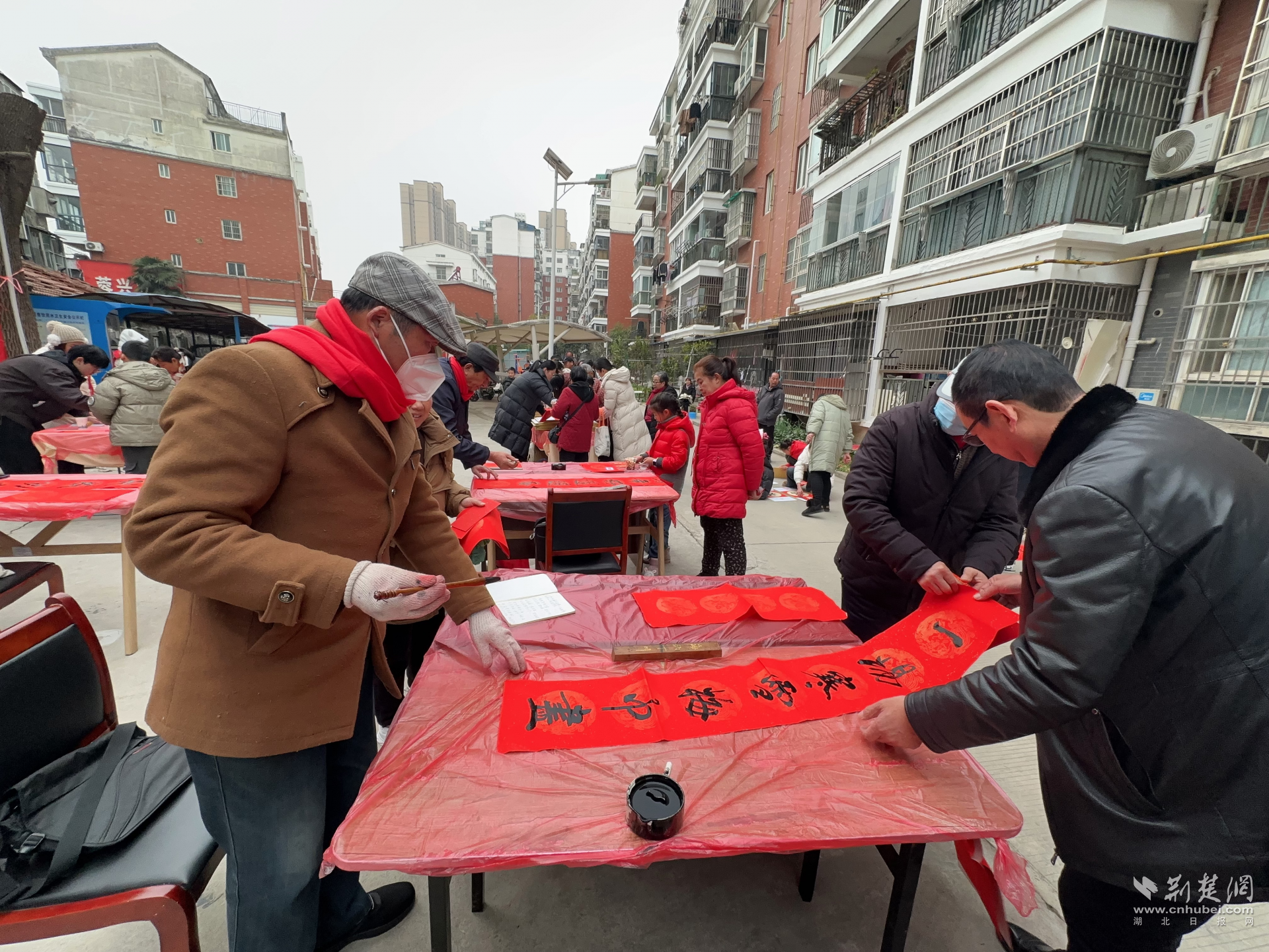 書法愛(ài)好者們現(xiàn)場(chǎng)揮毫潑墨書寫春聯(lián)。通訊員供圖