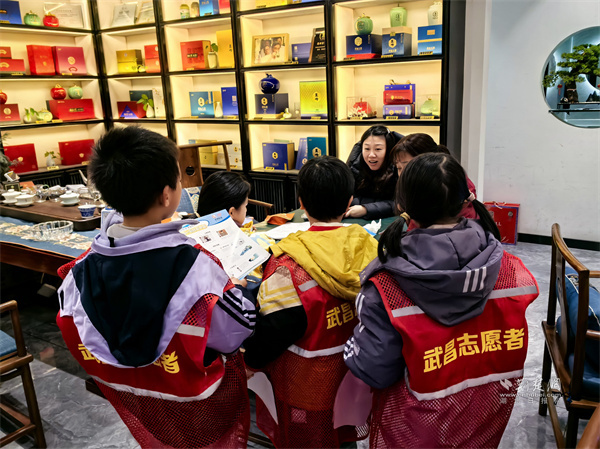 來自樓宇托管班的十余名小學(xué)生,在志愿者引導(dǎo)下化身“小小安全宣傳員”。他們身著“紅背心”,手持禁鞭宣傳折頁和倡議書,分組走進(jìn)陸羽茶都商鋪和人群聚集點(diǎn),向商戶、顧客及過往市民講解煙花爆竹禁燃禁放的相關(guān)規(guī)定、潛在危害及環(huán)保意義,并分發(fā)倡議資料。