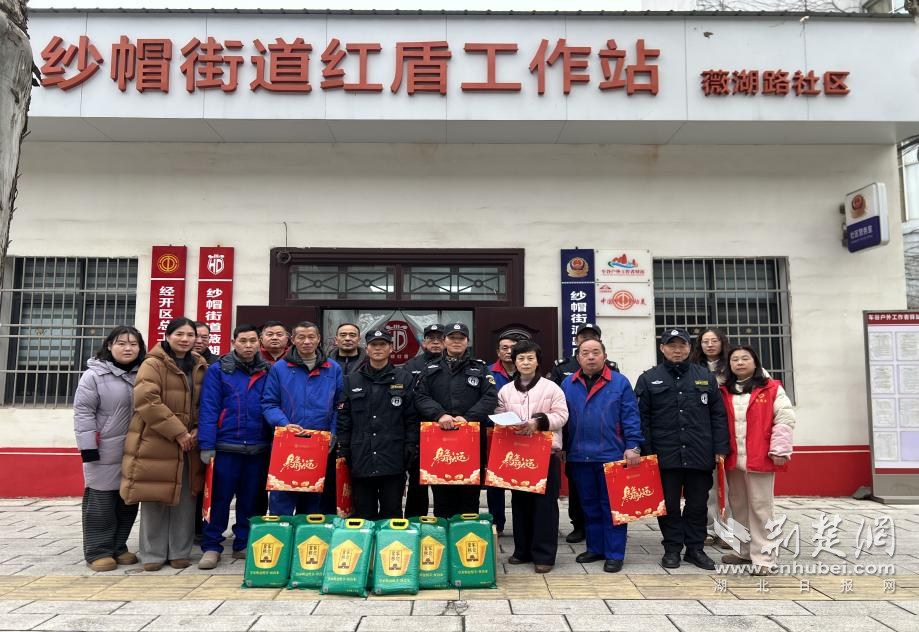 荊楚網(wǎng)(湖北日?qǐng)?bào)網(wǎng))訊(通訊員吳悠琪)2月10日,武漢經(jīng)開區(qū)紗帽街道薇湖路社區(qū)工會(huì)驛站開展春節(jié)慰問、新春送暖活動(dòng),為轄區(qū)內(nèi)保安、保潔等新業(yè)態(tài)從業(yè)人員送上大米、春聯(lián)等慰問品,向節(jié)日期間堅(jiān)守崗位的一線工作人員送上新春?jiǎn)柡颉?/p>