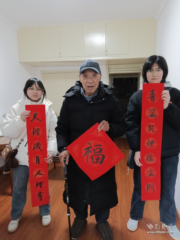 針對社區(qū)高齡、獨居老人,志愿者們開展“敲門行動”,走進“鶴耋安”重點關愛對象家中。在88歲的李奶奶家門口,志愿者們將一副寫有“福壽安康”的春聯(lián)認真貼好,紅紙金字映亮了老人的笑臉?!澳銈円粊恚依锞蜔狒[了,這春聯(lián)比買的還暖心!”李奶奶說道。每到一戶,志愿者們都送上手寫春聯(lián)與“?!弊?,幫忙排查水電隱患,陪老人聊家常、憶往昔,用陪伴驅散冬日的冷清。