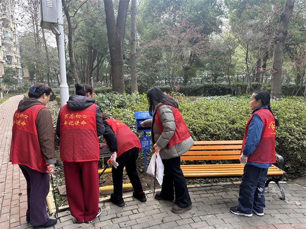 活動現(xiàn)場,全體人員齊聲合唱《學習雷鋒好榜樣》,激昂旋律點燃奉獻熱情。志愿者們分工協(xié)作、有序行動,一組擦拭樹木認養(yǎng)牌、更換嶄新標簽,為樹木明確“身份標識”,增添護綠責任;另一組擦拭公共休閑椅、科普設(shè)施及兒童游樂設(shè)施,讓公共空間潔凈如新。
