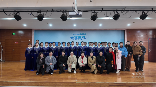 舞蹈二班帶來的《蒼穹喚》翩然登場,舒展身姿勾勒青春張力;執(zhí)行校長以“知行互促,成長有聲”為題發(fā)言,叮囑學子深耕書本、躬身實踐?!鞍舭籼痢敝驹刚叩目彀濉吨懈琛肪o隨其后,清脆竹板聲傳遞“知行合一”真諦,贏得陣陣掌聲。優(yōu)秀教師代表以溫情話語,為學員注入前行力量。互動問答環(huán)節(jié)中,同學們踴躍參與、收獲新知?;顒拥淖詈?,合唱班一曲《一個媽媽的女兒》悠揚響起,全體師生同聲歌唱,為典禮畫上圓滿句號。