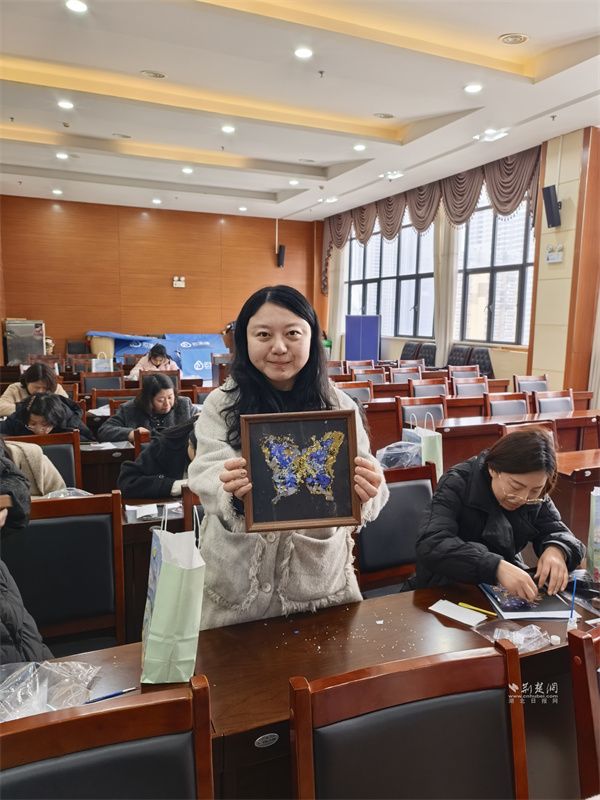 螺鈿手工擺件制作環(huán)節(jié),專業(yè)老師講解了螺鈿工藝的千年歷史與制作技巧,演示了底座處理、螺鈿粘貼、細節(jié)修飾全流程。女職工們領取專屬物料包,發(fā)揮創(chuàng)意搭配色彩、設計造型,工作人員全程提供協(xié)助。創(chuàng)作完成后,大家紛紛展示成品、分享心得,在動手實踐中感受非遺魅力,收獲滿滿成就感。