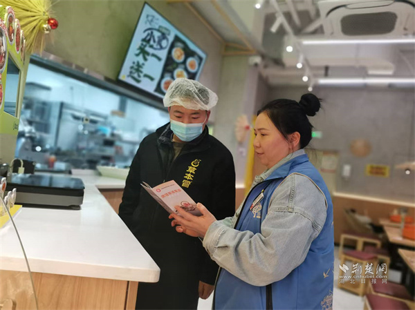 工作人員向轄區(qū)居民及商戶普及非法集資識別知識。 通訊員供圖