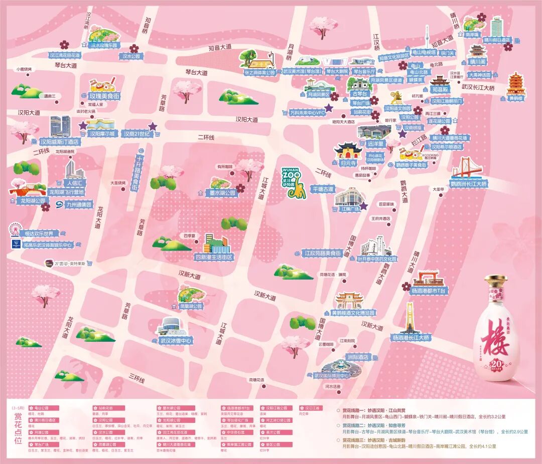 △“妙遇漢陽·一路生花”春季巴士觀光專線線路圖。
