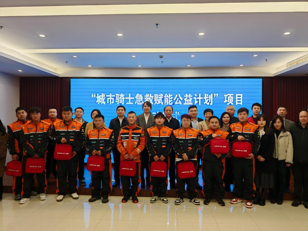 為保障急救實施,愛心企業(yè)邁瑞醫(yī)療為項目捐贈了首批30臺AED設備,并與省慈善總會駐會副會長郭志高將10臺設備現(xiàn)場轉(zhuǎn)交給現(xiàn)場的騎手志愿者代表,郭志高代表省慈善總會接受了捐贈并向邁瑞醫(yī)療頒發(fā)捐贈證書。這批設備將配置于騎手志愿者電動車后備廂或隨身攜帶,為“流動的急救力量”提供關(guān)鍵支撐。