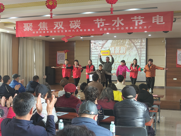 荊楚網(wǎng)(湖北日?qǐng)?bào)網(wǎng))訊(通訊員 魏文婷 侯本瑞)3月18日,在第34屆“世界水日”、第39屆“中國水周”到來之際,武昌區(qū)楊園街道余家頭社區(qū)新時(shí)代文明實(shí)踐站攜手武昌供水分公司余家頭水廠,共同舉辦百姓大舞臺(tái)“聚焦雙碳,節(jié)水節(jié)電”主題活動(dòng)。活動(dòng)在武昌區(qū)新時(shí)代文明實(shí)踐中心指導(dǎo)下,將綠色低碳理念融入文藝展演、科普互動(dòng)、便民服務(wù),為居民奉上一場(chǎng)“聽得懂、看得見、用得上”的生態(tài)文明實(shí)踐課。