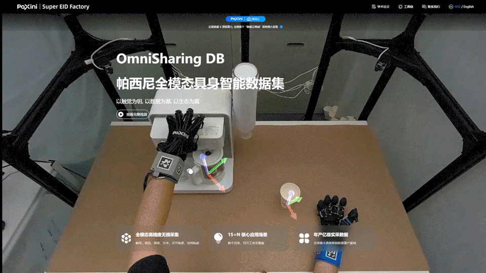通過全球首創(chuàng)“以人為中心(Human-Centered)”的全模態(tài)高精度實采具身數(shù)據(jù)體系實現(xiàn)高保真數(shù)據(jù)采集,是帕西尼東西湖數(shù)據(jù)采集工廠的核心亮點(diǎn),其中尤為突出的是包含極度稀缺的高精度觸覺感知數(shù)據(jù)。