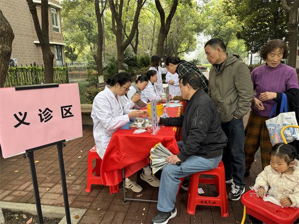 醫(yī)護(hù)人員為居民測(cè)量血壓、血糖。 通訊員供圖