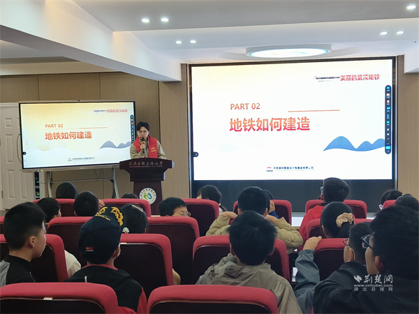 城地院志愿者華銳哲用趣味問答解答“地鐵是如何修建的”。他將盾構機比作“鋼鐵蚯蚓”,講解刀盤啃巖、管片筑墻、高精度導航避迷路的工作原理,針對孩子們提出的“碰到大石頭怎么辦”等疑問,生動介紹了孤石爆破、溶洞灌漿等地下施工技巧。同時,他以徐東路小學旁武漢地鐵5號線為例,講述著特色站點的匠心獨運,以及自動駕駛列車穿梭于城市脈搏中的智能與從容。