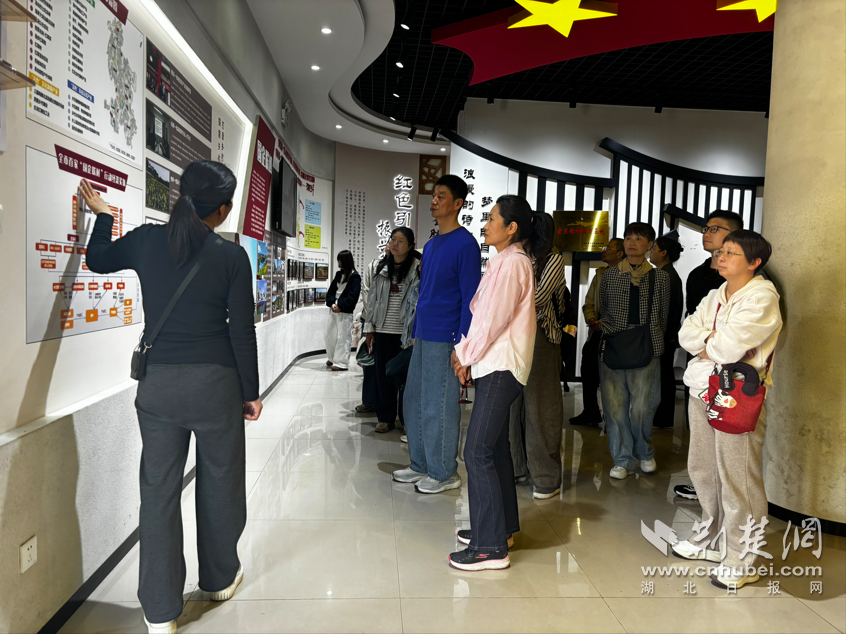 隨后,一行人走進(jìn)紅色鳳凰展覽館,開展沉浸式學(xué)習(xí)。在講解員引導(dǎo)下,大家通過珍貴史料、實(shí)物展陳和影像資料,系統(tǒng)回顧革命先輩浴血奮戰(zhàn)的光輝歷程。展館依托數(shù)字化展陳、多媒體互動(dòng)等手段,讓紅色歷史更加立體生動(dòng),黨員們?cè)诟形虺跣氖姑耐瑫r(shí),也切身體驗(yàn)到科技賦能紅色文化傳播的現(xiàn)實(shí)路徑。