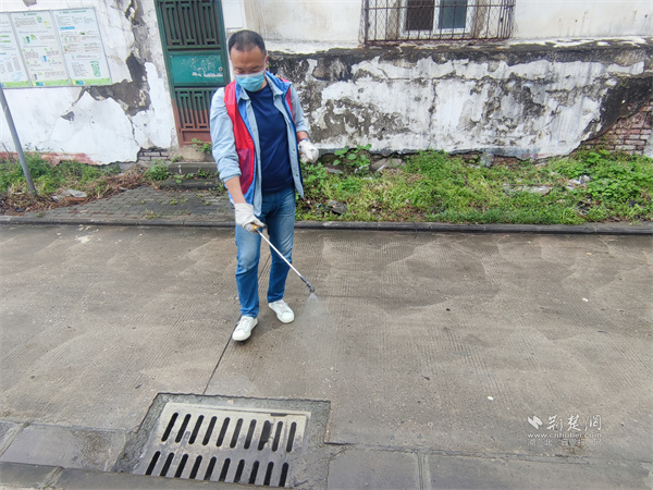 消殺人員對積水消退區(qū)域噴灑消毒。 通訊員供圖