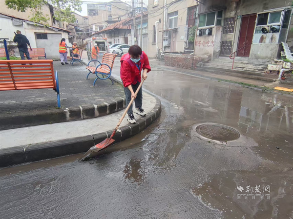 荊楚網(wǎng)(湖北日報網(wǎng))訊(通訊員 朱凡)受近期強降雨影響,武漢市武昌區(qū)白沙洲街道堤東社區(qū)部分路段出現(xiàn)下水道反涌、淤泥堆積等情況,對居民正常出行造成不便。為盡快恢復(fù)社區(qū)整潔環(huán)境,阻斷病菌蚊蟲滋生,4月10日,白沙洲街道迅速組織開展雨后環(huán)境衛(wèi)生集中清潔消殺行動,志愿者、社區(qū)工作者、環(huán)衛(wèi)工人、城管隊員等30余人參與整治。